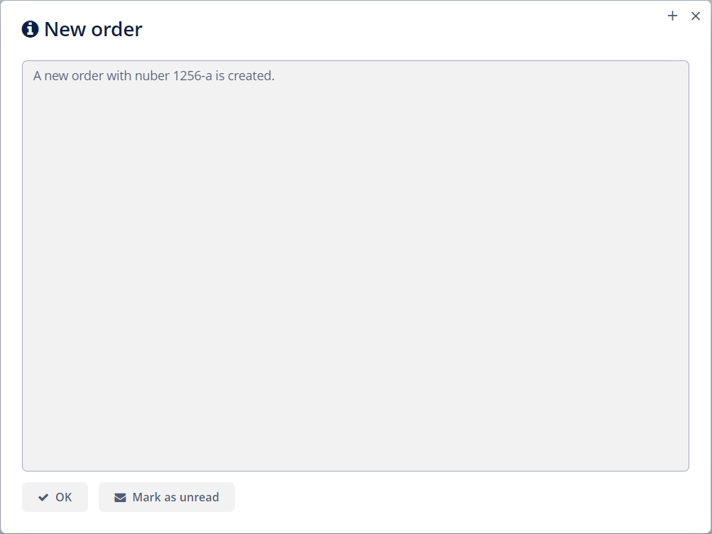 When the user clicks OK, the notification window is closed and the notification is marked as read.
