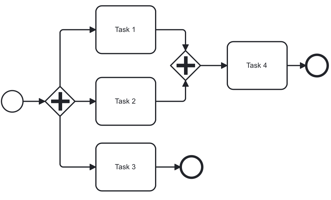 A parallel gateway (or AND-gateway) is used to split a process flow into multiple parallel paths or to merge multiple parallel paths back into a single flow.