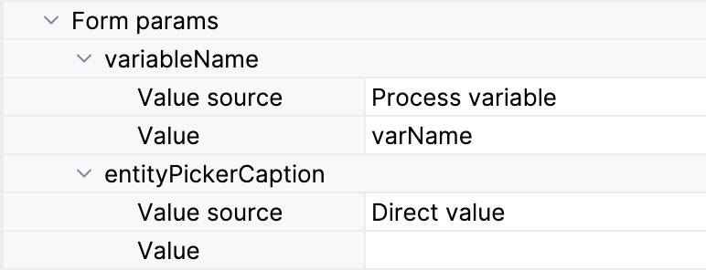 Process form with process variables (default) – Process variables of type Entity will be represented in the form using the EntityPicker component. The value of the variable can be selected from a dropdown list.