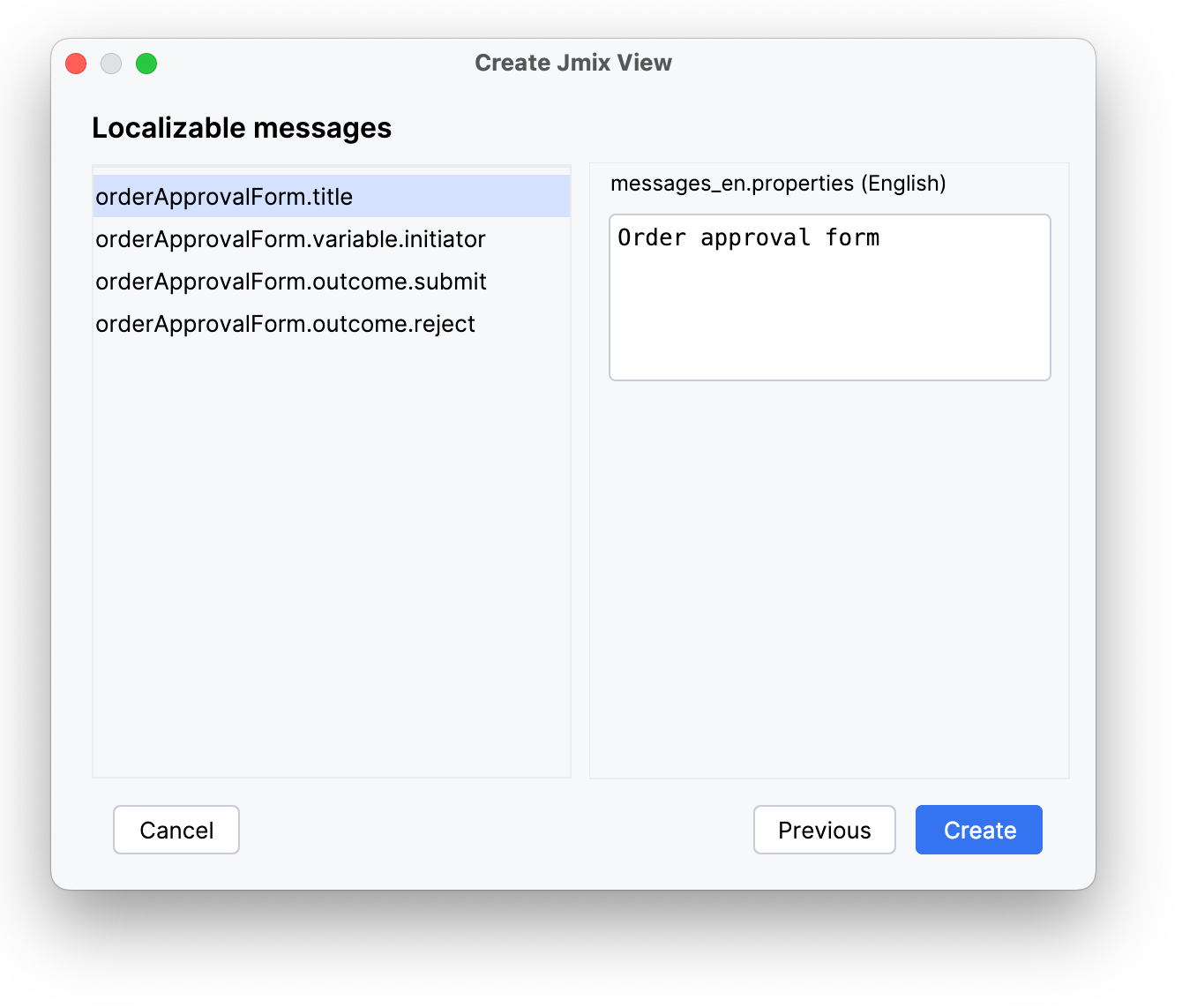 Add a message for the form. When localizing the application into multiple languages, you will have the option to add messages for each supported language.