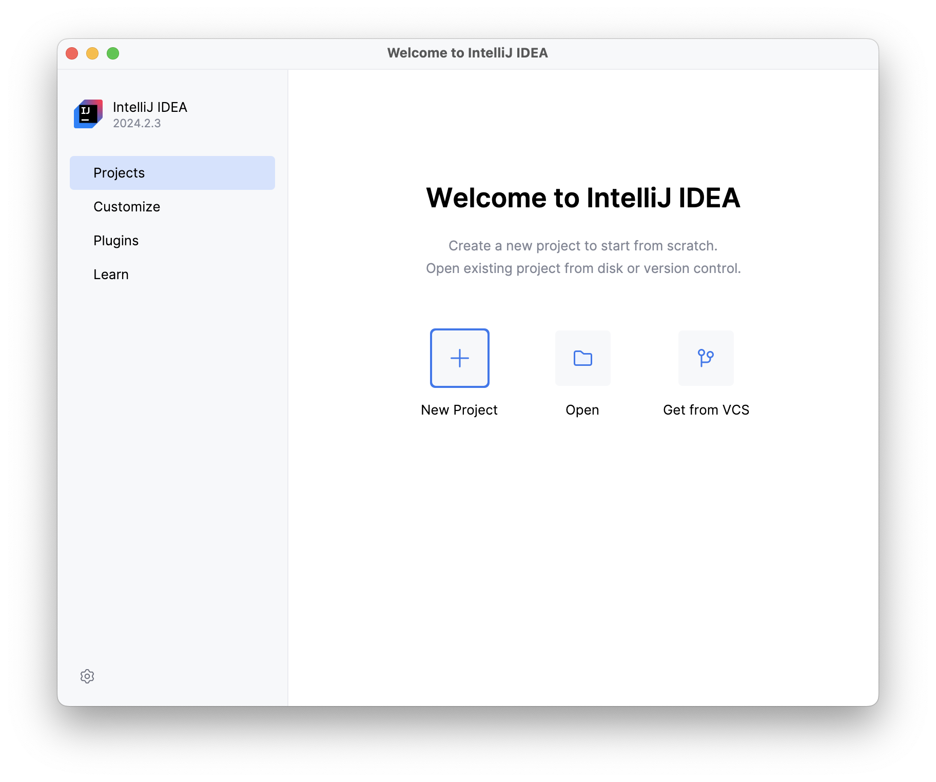 Run IntelliJ IDEA with Jmix Studio plugin installed, switch to the Projects tab and click New Project: